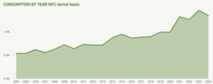 In the current market we see stability with probably a slight upward movement due to limited availability and uncertainty around RCN prices. Tanzania auction started but with the violence post elections, situation is a bit difficult. Prices of RCN went up a bit and current kernel prices would not allow to buy at those RCN levels without losing money.