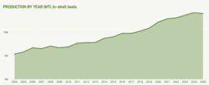 In the top table you see production (inshell) and in the bottom table you see consumption (kernel)!